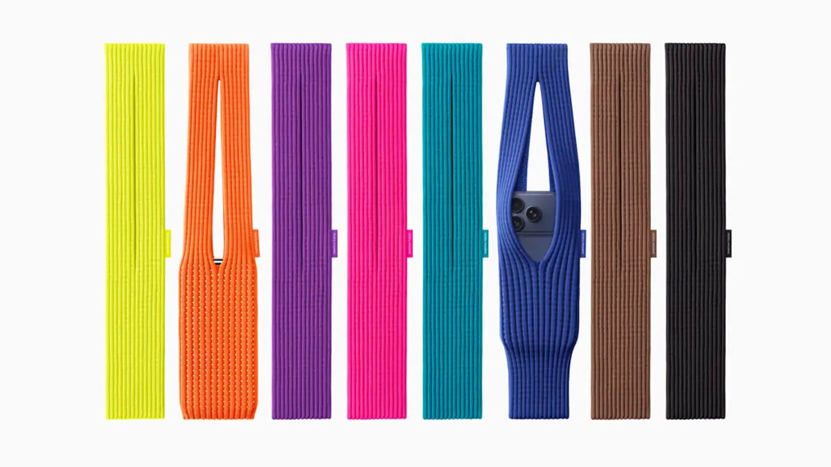 أعلنت شركة Apple رسميًا عن iPhone Pocket، وهو إكسسوار جديد محدود الإصدار مصمم لحمل أجهزة iPhone وسماعات AirPods وبعض الأغراض اليومية الصغيرة. الحقيبة تأتي بتصميم ثلاثي الأبعاد مصنوع بتقنية النسيج الشبكي المضلع (ribbed mesh). وقد تم تطويرها بالتعاون مع استوديو Issey Miyake الشهير، الذي صمم الزي الأيقوني الأسود الذي كان يرتديه ستيف جوبز.