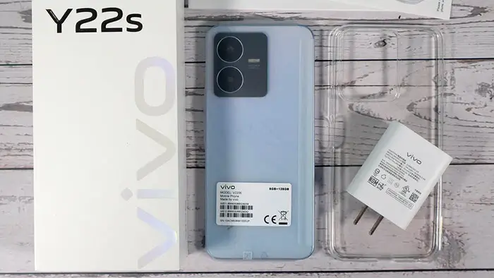 - محتويات العلبة: هاتف vivo Y22s – الشاحن وكابل الشحن – غطاء حماية – دبوس الشريحة.